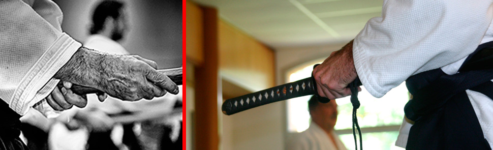 TRABAJO CON ARMAS: Jo (bastón de unos 120 cm), Bokken (sable de madera, como elemento para la práctica de la esgrima o ken jutsu) y Tanto (defensa contra cuchillo). Indispensable para la correcta apreciación de la distancia y el progreso añadiendo un porcentaje de riesgo controlado.